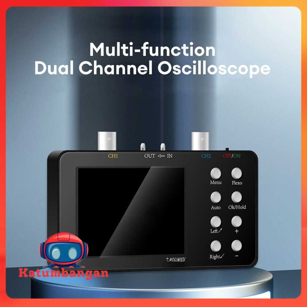 Analisis Sinyal Elektronik dengan Akurat Oscilloscope digital hadir untuk mengamati dan menganalisis sinyal elektronik dalam waktu nyata. Memiliki kecepatan sampling hingga 50 ms/s dengan bandwidth 10 MHz. Ini sangat berguna untuk pemecahan masalah, pengujian sirkuit, dan pemahaman mendalam tentang sinyal elektronik pada peralatan rumah atau mobil. Ukur Dua Sinyal Listrik Memiliki dua saluran atau kanal yang dapat digunakan untuk mengukur dua sinyal listrik secara bersamaan. Tak hanya mengukurnya saja, namun hubungan kedua sinyal listrik tersebut juga bisa dianalisa dengan menggunakan lissajous mode. Mode tersebut akan menampilkan hubungan fase antara dua sinyal yang berbeda pada sumbu horizontal dan vertikal pada osiloskop. Fungsinya adalah untuk menentukan apakah kedua sinyal tersebut berada dalam fase yang diinginkan atau tidak. Hasil Pengukuran Jelas dengan LCD Ketika Anda melakukan pengujian, hasilnya akan tampil dengan jelas di layar LCD dengan ukuran 3.2 inch. Teknologi layarnya sudah HD dan berwarna. Hadirnya layar LCD akan memudahkan Anda untuk membaca hasil dan melakukan tindakan secara cepat sesuai dengan hasil pengujian. Desain Portable Memiliki ukuran yang kecil sehingga memudahkan Anda untuk membawanya ke mana pun Anda pergi. Dilengkapi dengan baterai bawaan berkapasitas 2500 mAh sehingga Anda bisa menggunakannya tanpa kabel yang mengganggu. Jika daya baterai sudah habis Anda bisa mengisi ulangnya menggunakan kabel daya yang tersedia.