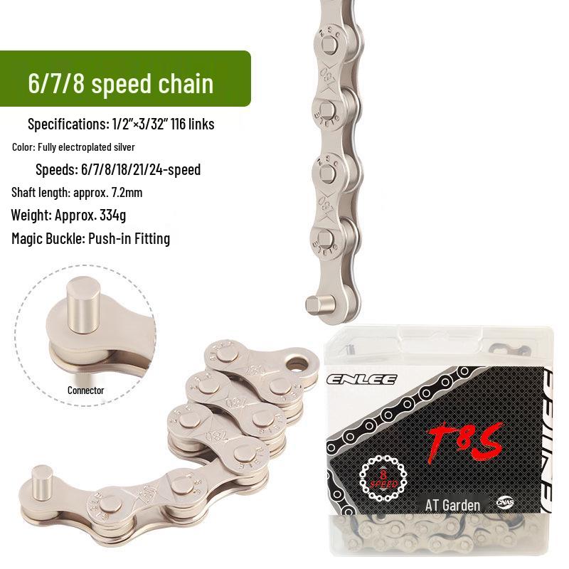 ENLEE Ржавчиностойкая гальванизированная цепь с магической пряжкой для 8-12 скоростных горных и шоссейных велосипедов Boxed
