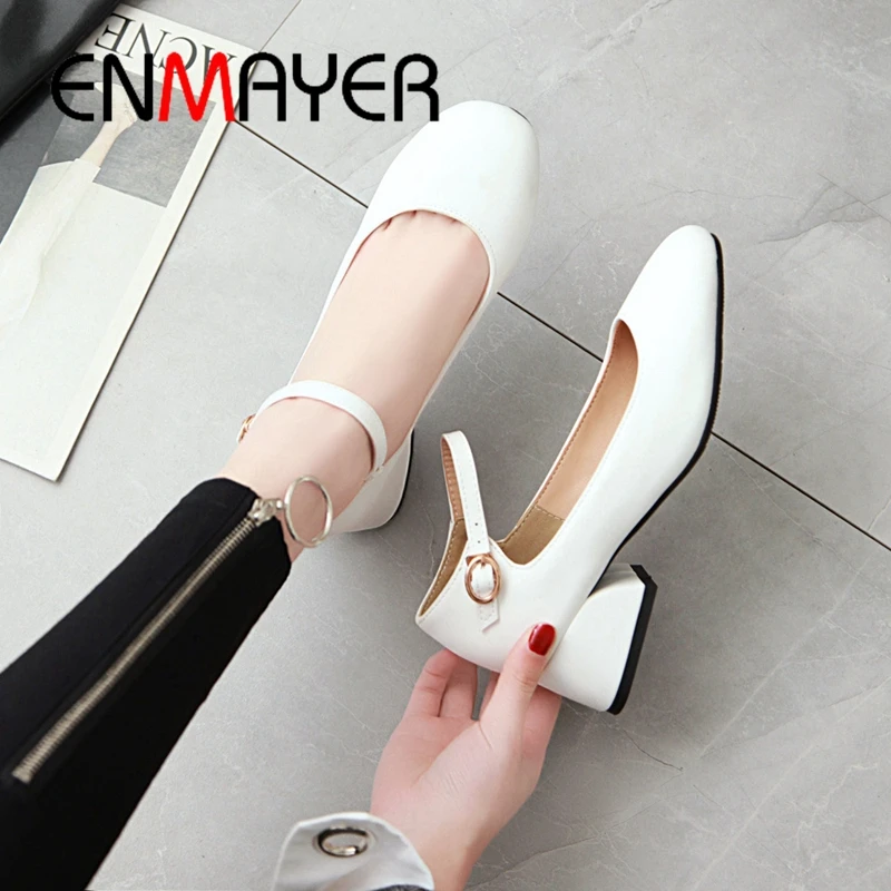 ENMAYER/женские туфли-лодочки на среднем каблуке, Повседневная модная женская обувь из микрофибры на квадратном каблуке с круглым носком, разм...