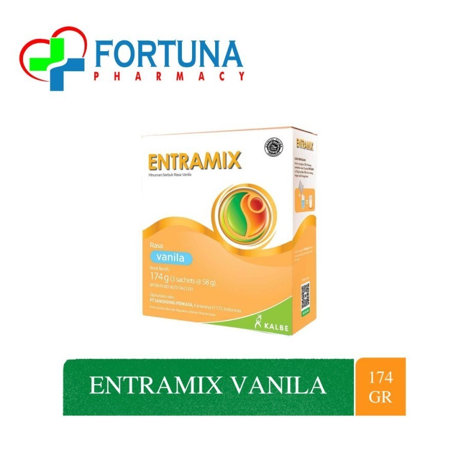 Entramix adalah nutrisi seimbang lengkap yang diformulasikan khusus oleh PT. Kalbe untuk memenuhi kebutuhan gizi orang dewasa dan lansia. Entramix memiliki kalori yang cukup untuk menggantikan makanan pada umumnya dan mengandung serat pangan untuk menjaga metabolisme tubuh. Serta entramix tidak mengandung laktosa sehingga tidak menyebabkan diare. Entramix juga membantu para orang dewasa yang mengalami kesulitan makan, hilangnya nafsu makan dan pengganti sarapan atau makan malam. Berilah yang terbaik untuknya, jangan biarkan ia berhenti makan dan pasrah dengan keadaannya. NO BPOM : MD867010586281