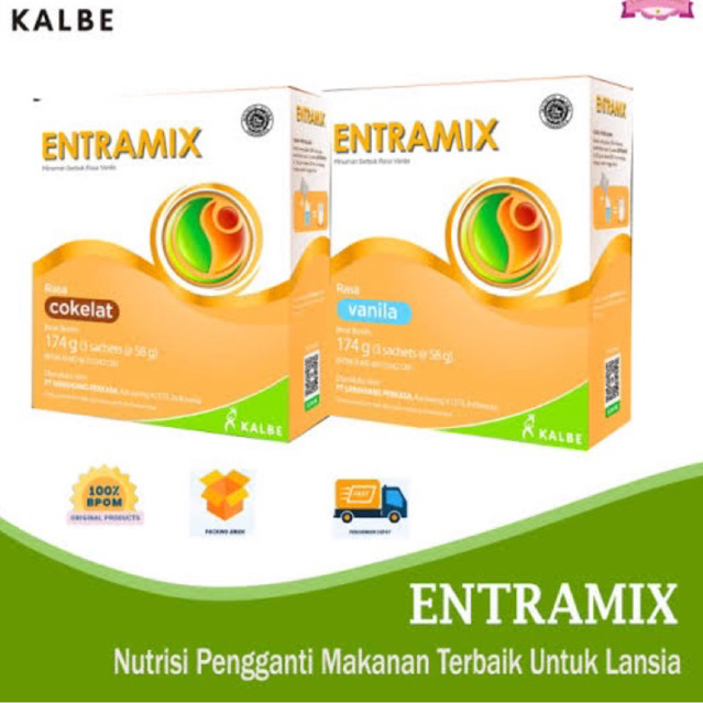 Entramix merupakan nutrisi lengkap seimbang, yang sangat cocok untuk dewasa hingga lansia dan dapat berperan sebagai pengganti makan, menjaga massa otot, serta kesehatan.Dilengkapi dengan serat pangan inulin yang berperan sebagai prebiotik unduk kesehatan saluran cerna. Bantu lengkapi kebutuhan protein dan kalori harian. Komposisi dan keunggulan Entrakid antara lain :