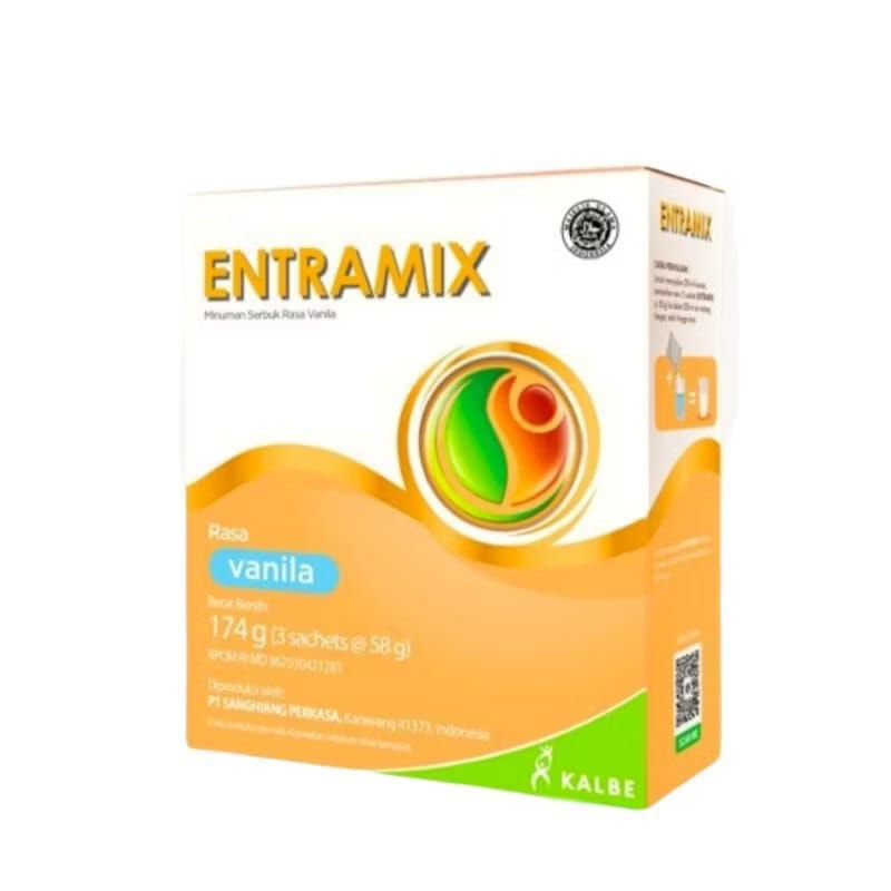 Entramix Vanila bermanfaat sebagai pengganti makan utama atau makanan tambahan pada pasien malnutrisi, anoreksia, lansia, atau pasien dalam masa penyembuhan. Entramix Vanila adalah susu yang mengandung nutrisi lengkap dan seimbang, dengan distribusi kalori dari karbohidrat 58%, protein 15% dan lemak 27%.