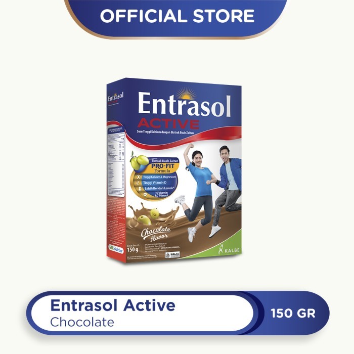 Entrasol Active Chocolate 150g adalah nutrisi tinggi Kalsium dengan ekstrak buah Zaitun dilengkapi dengan Pro-Fit Formula (tinggi Kalsium & Magnesium, tinggi Vitamin D, lebih rendah Lemak, 10 Vitamin & 7 Mineral) untuk membantu penuhi nutrisi harian agar tetap aktif dan produktif.