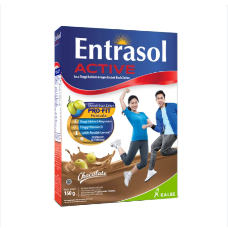 Entrasol Active merupakan susu tinggi kalsium untuk usia 19-50 tahun. Entrasol Active bermanfaat untuk membantu memenuhi nutrisi tubuh, menjaga kesehatan tulang dan gigi, serta melindungi organ tubuh dari penyakit degeneratif seperti osteoporosis, penyakit jantung, rematik, dan lain-lain.