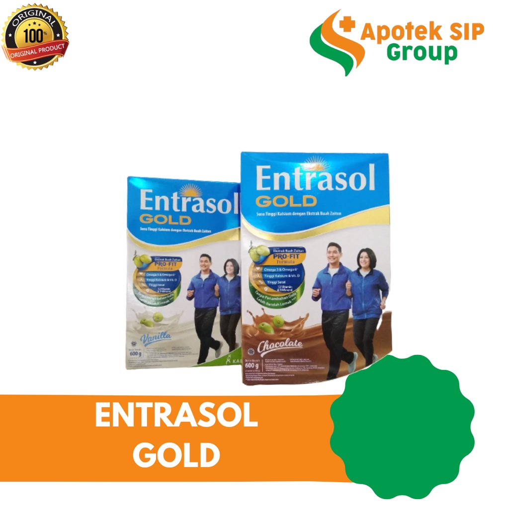 Entrasol Gold merupakan susu tinggi Kalsium ditambah dengan PROFIT Formula (Power Bone dan Hytolive) yang cocok dikonsumsi oleh para lansia (>50 tahun) demi memenuhi nutrisi organ tubuh dan terlindungi dari Penyakit Degeneratif seperti osteoporosis, penyakit jantung koroner, cepat lelah dan rematik.
