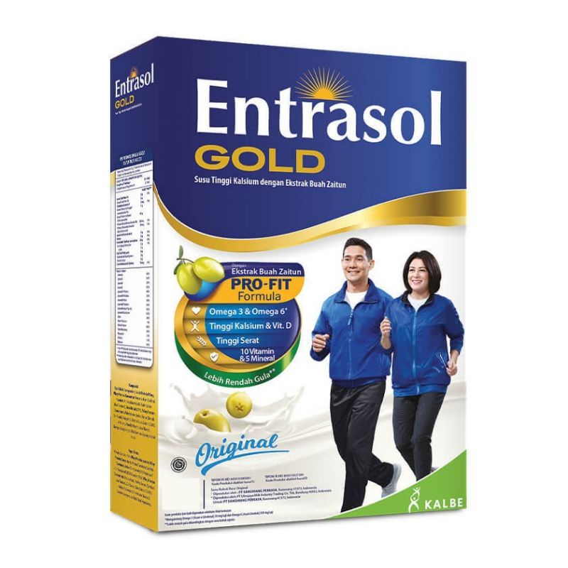 Lakukan gaya hidup sehat dengan Entrasol Gold merupakan Susu Tinggi Kalsium PLUS dengan PROFIT FORMULA (Power Bone dan Hytolive) untuk usia >50 tahun yang dapat melindungi organ tubuh dari Penyakit Degeneratif (osteoporosis, penyakit jantung koroner, rematik, cepat lelah, dll).