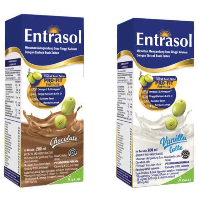 Entrasol UHT adalah susu berkalsium plus yang mengandung 7 Fakta Gizi, termasuk: Ttnggi kalsium untuk mencegah osteoporosis Omega-3 dan Omega-6 (1:5) yang baik untuk kesehatan jantung, serta antioksidan faktor (Vitamin C dan Vitamin E) untuk melindungi organ tubuh secara keseluruhan.