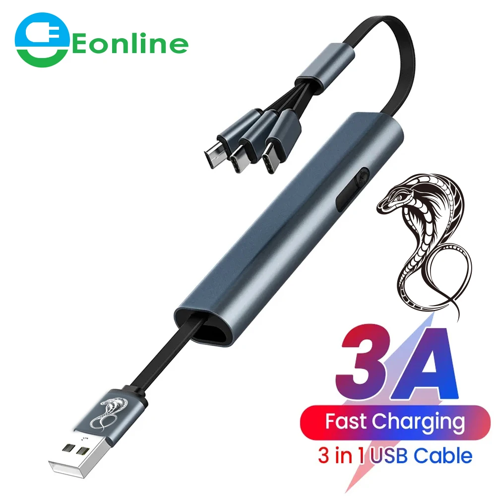 EONLINE 3D УФ 3 в 1 быстрая зарядка USB кабель для телефона Samsung Huawei скрытый мульти Выдвижной Micro USB C зарядный кабель