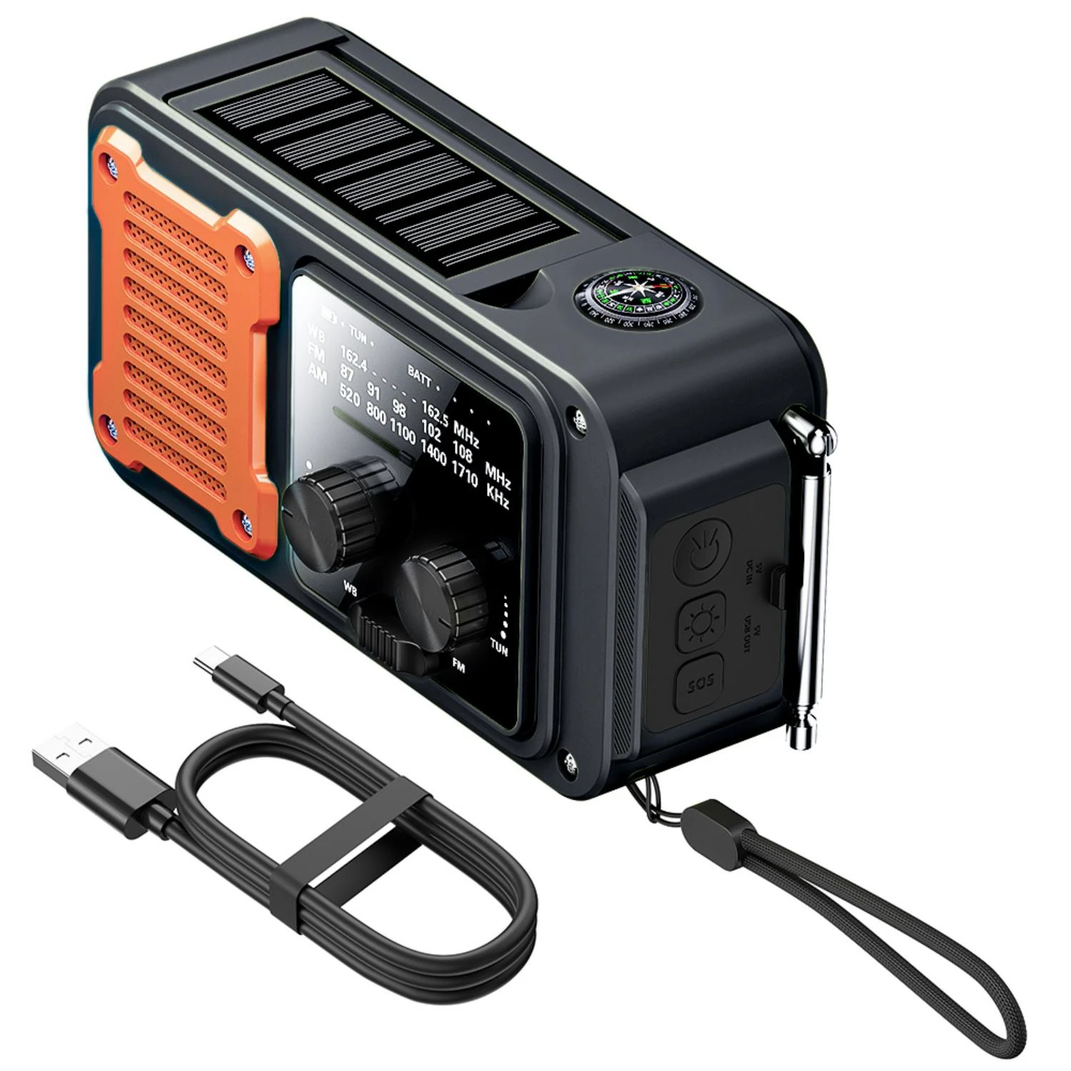 ER-64P Emergency Radio AM/FM/WB Full-Band Multi-Function Solar Radio Outdoor Portable Emergency Radio with USB-C Interface