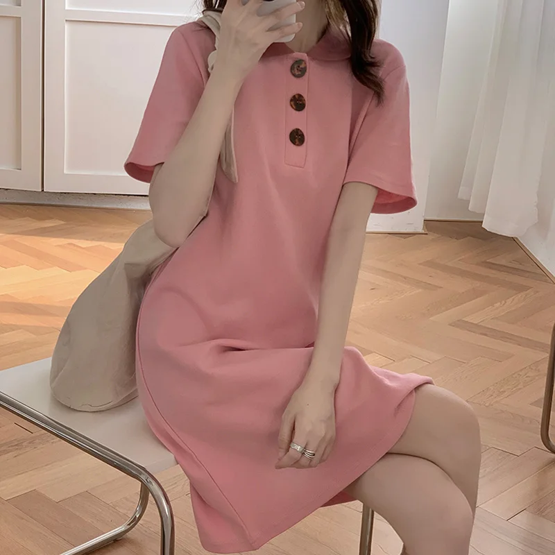 Платье-футболка женское средней длины с коротким рукавом и воротником в гонконгском стиле