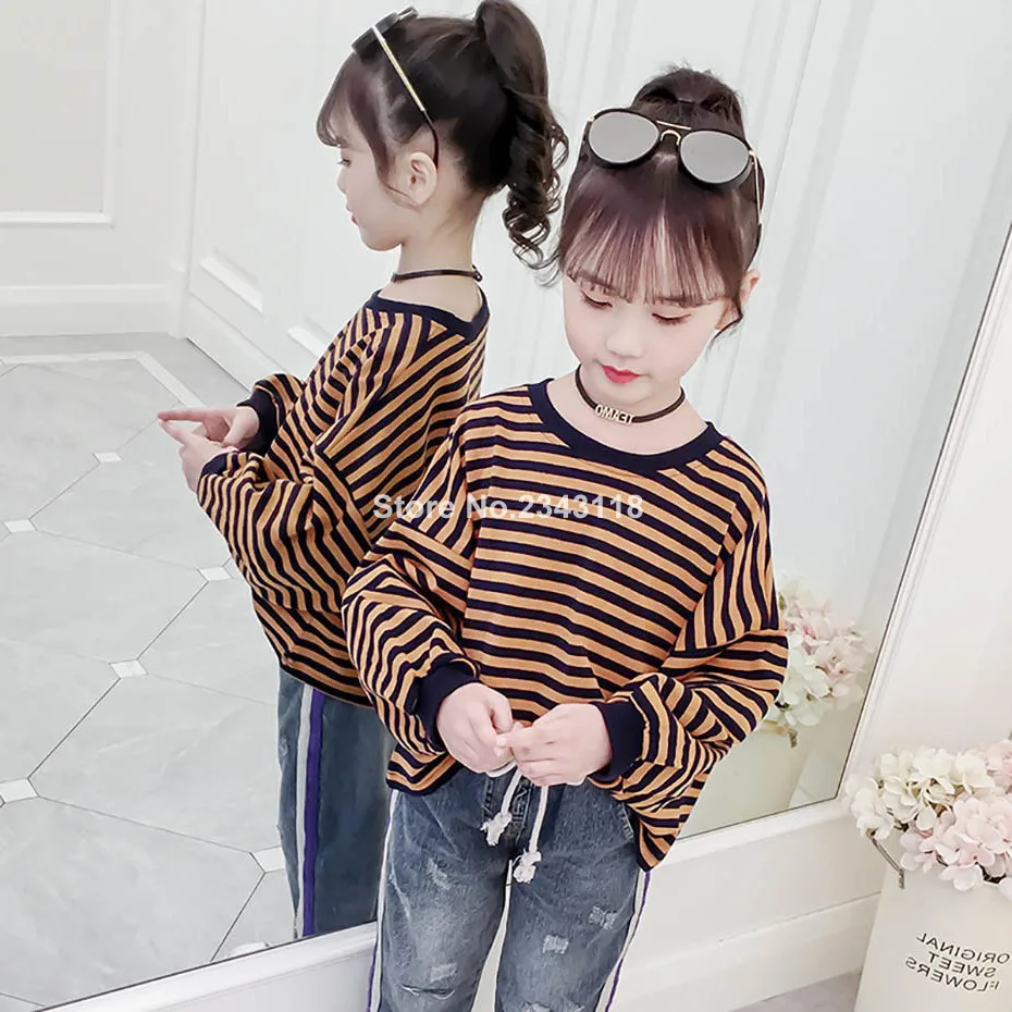 Spring Girl T-shirts Long Sleeve T-shirts For Kids Striped T-shirts For Girls Casual Kids Clothing 6 8 12 Year Children Clothing