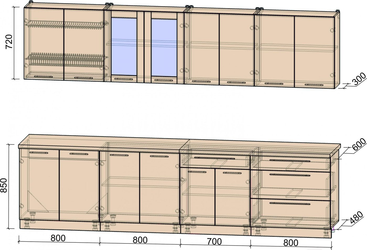 Готовая кухня Интерлиния Мила Пластик 3.1 Б (мрамор/белый глянец/кастилло темный)
