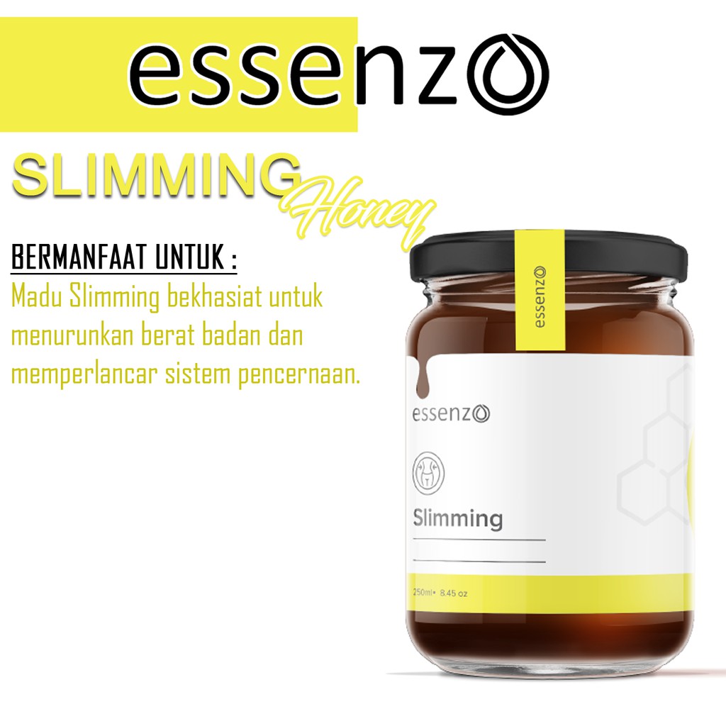Essenzo Slimming Honey mengkombinasikan madu berkualitas tinggi dengan Sari Kurma, Ekstrak Jati belanda, Ekstrak Lemon, Ekstrak Delima, dan Vitamin C.