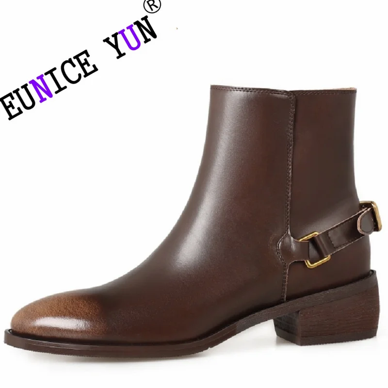 [EUNICE yun】винтажные женские ботильоны для осени и зимы, толстые женские ботинки с боковой молнией в стиле ретро
