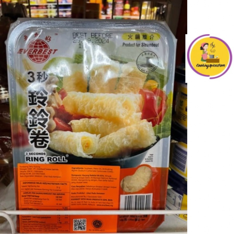 5. Silahkn CHAT kami: Bila paket kurang/ salah/ bocor dll. Diskusikan dgn SANTUN agar kami dapat memberi solusi terbaik (HARAP lampirkan foto alamat di bungkus paket & foto isi paketnya Ring Roll adalah makanan tradisional yang berasal dari Zhejiang Cina, murni terbuat dari kulit tahu. Ring Roll paling baik dimakan dengan hidangan berbasis sup - cukup celupkan ke dalam sup selama 3 detik dan selesai! Nikmati basis sup dengan kerenyahan Ring Roll; dapat juga dimakan dengan hot pot atau ramen.
