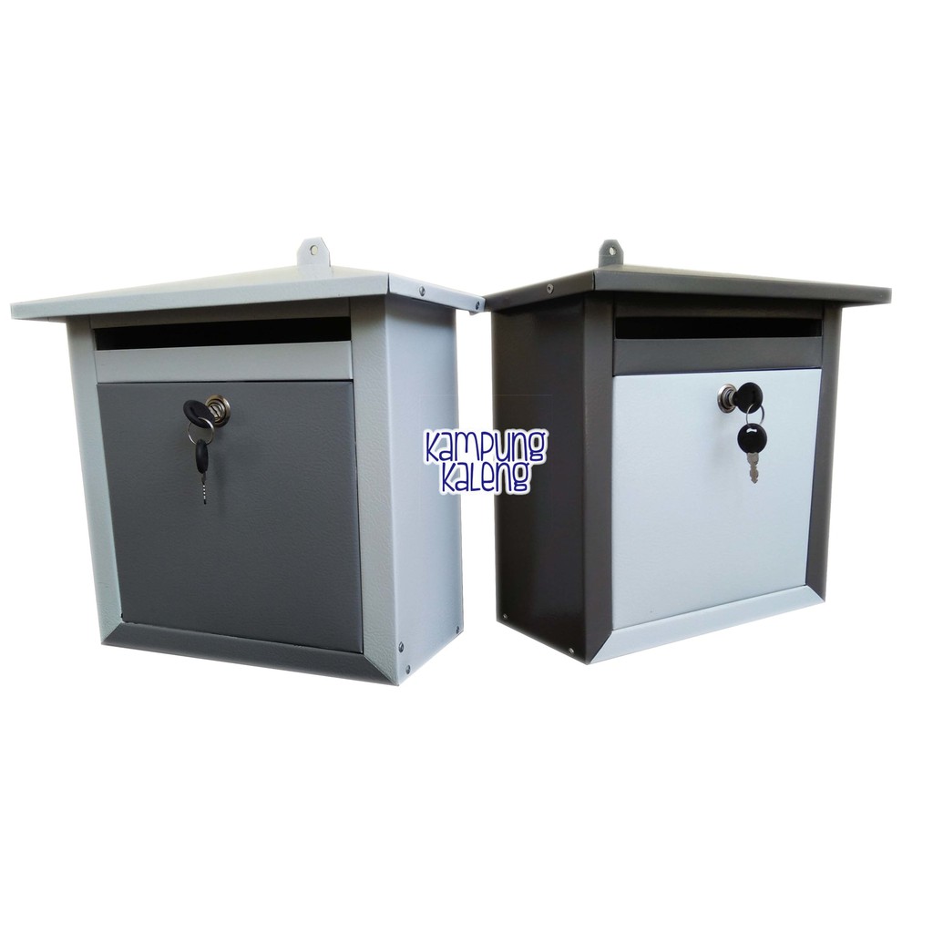 Kotak Surat yang terbuat dari kaleng / alumunium, ukuran tinggi 30 cm, panjang 27 cm dan tebal 12 cm. Ukuran lubang 22 x 1,5 cm. Dilengkapi dengan tempat untuk menggantung dan kunci yang berada di depan dengan sistem buka tutup dari atas ke bawah