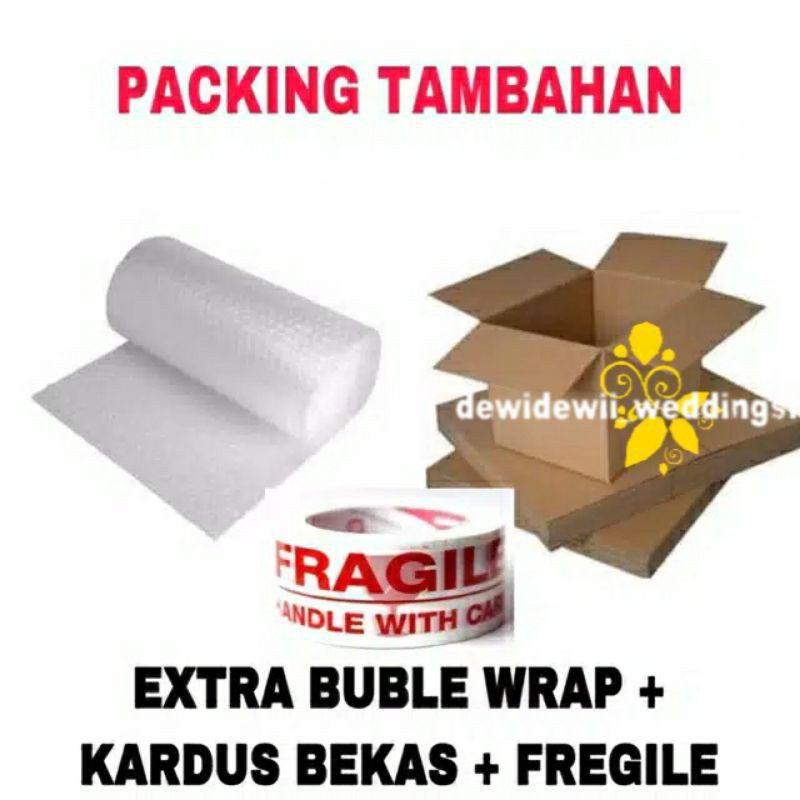 disini, kita menyediakan EXTRA BUBBLE WRAP + KARDUS. untuk melindungi paketan kita supaya benar2 aman diperjalan~ Tahan banting, dan Tahan air~