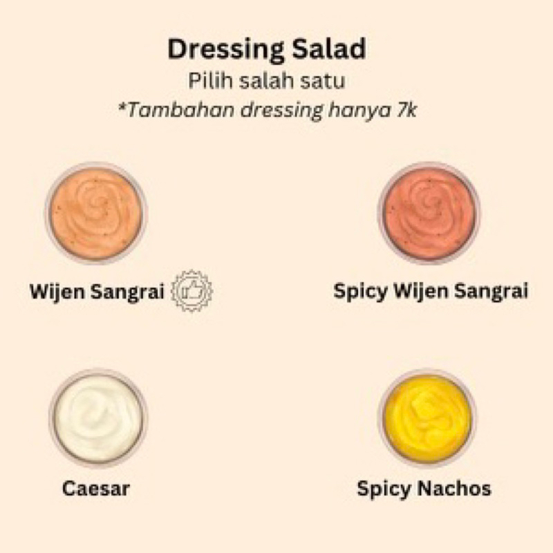 Dressing 75ml tambahan bagi yang ingin menambahkan dressing lebih banyak