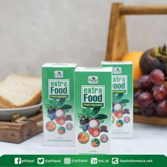 EXTRA FOOD diformulasikan sebagai makanan suplemen herba yang berkhasiat untuk mengatasi berbagai penyakit dan bermanfaat bagi kesehatan tubuh. Dengan mengkonsumsi EXTRA FOOD ini akan memberikan perlindungan Anda dan keluarga dari radikal bebas.