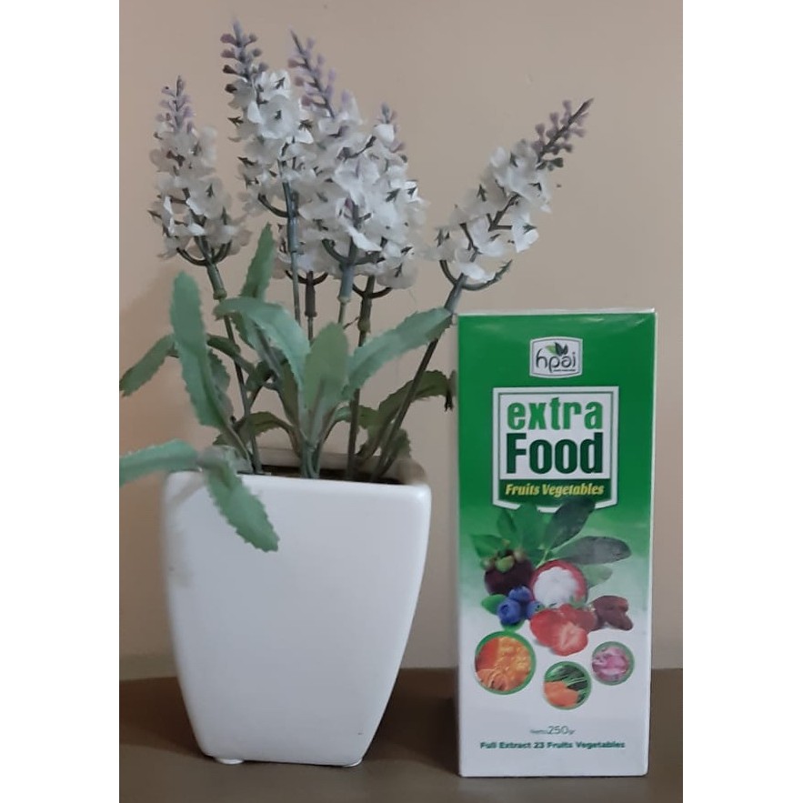Extra Food HPA (formulator Extra Fruit ) adalah makanan kesehatan herbal alami tradisional dalam sebuah minuman dengan komposisi extraks sinergi dari 21 buah dan sayuran. Extra Food di formulasikan sebagai suplemen berkhasiat untuk mengatasi berbagai penyakit menjaga stamina dan kesehatan tubuh manusia. Extra food kaya dengan serat, vitamin dan nutrisi alamiah.