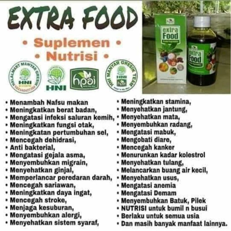 extra food suplemen kesehatan alami yang dibuat dari sinergi 23 herbal yang kaya akan anti oksidan dan serat alami. memberikan perlindungan dari radikal bebas.
