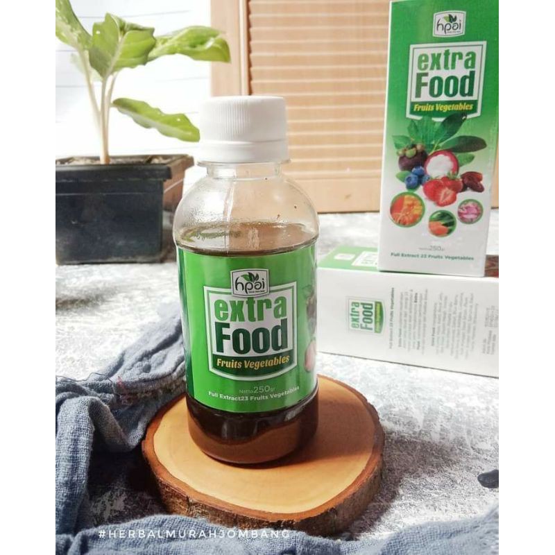 Extra Food suplemen kesehatan alami yang dibuat dari sinergi 23 herbal yang kaya akan antioksidan & serat alami. Mengkonsumsi Extra Food memberikan perlindungan Anda dan keluarga dari radikal bebas.