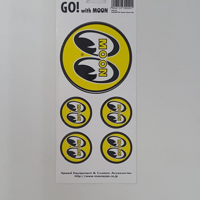 5 Assorted Mooneyes eyeball logo stickers on one sheet.