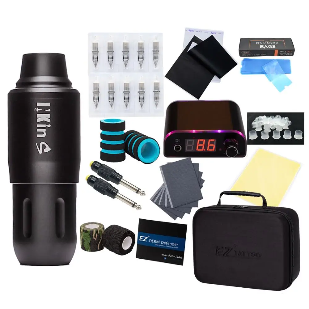 EZ Inkins короткая ручка тату машина набор мини источник питания педаль переключатель с картриджем иглы татуировки художника питания