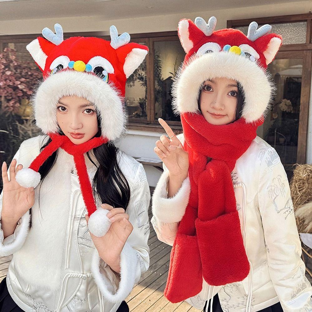 Ear Muffs Lion Dance Beanies Hat Tassels Winter Plush Warm Hat New Year Pullover Cap Outdoor Style 2
