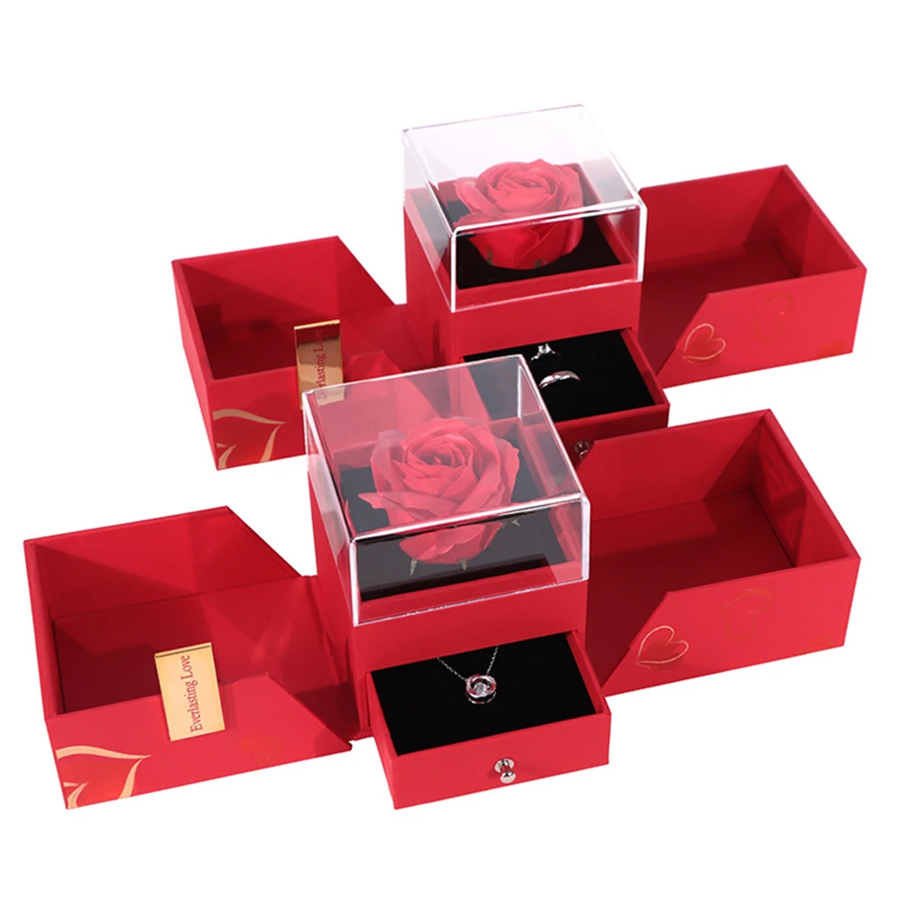 Earstuds Rings Necklaces Jewelry Packaging Boxes Red Hand-held Gift Boxes Necklaces Rings Eternal Flower Boxes Jewelry Packaging