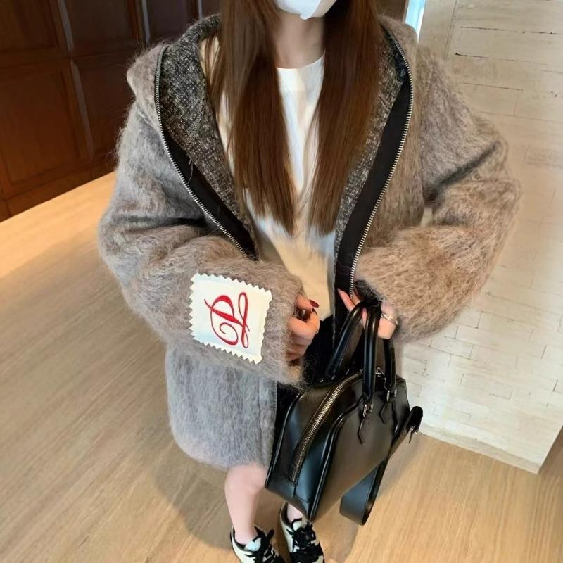 EastRogue Хлопково-шерстяное пальто с капюшоном на молнии Новый стиль Свободный темперамент Высокое чувство L
