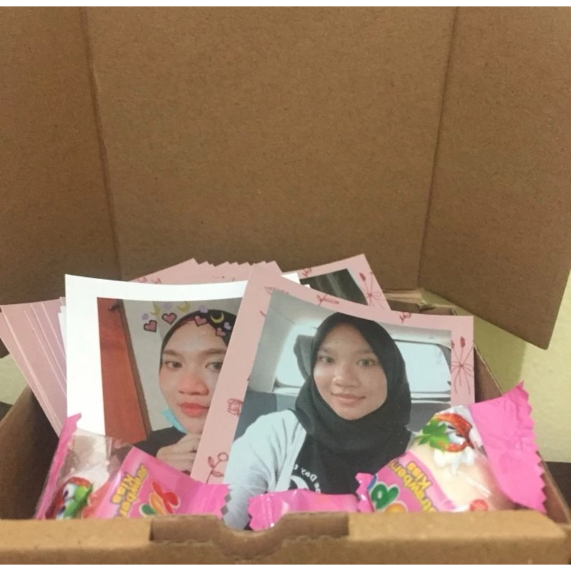 16 polaroid polos/warna + 16 Polaroid motif (Bebas request costum apa saja) + kartu ucapan (jika costumer ingin request) + Box packaging (include jasa potong)