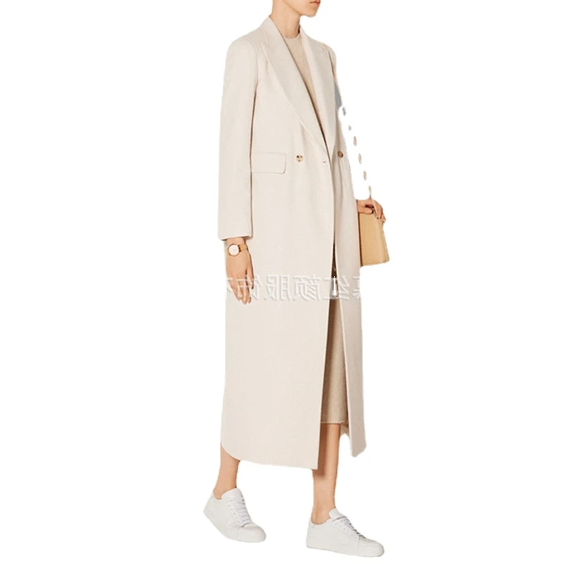 Женское двубортное шерстяное пальто, винтажная Роскошная золотистая верхняя одежда черного цвета с круглым вырезом и длинным рукавом, Осень-зима 2022