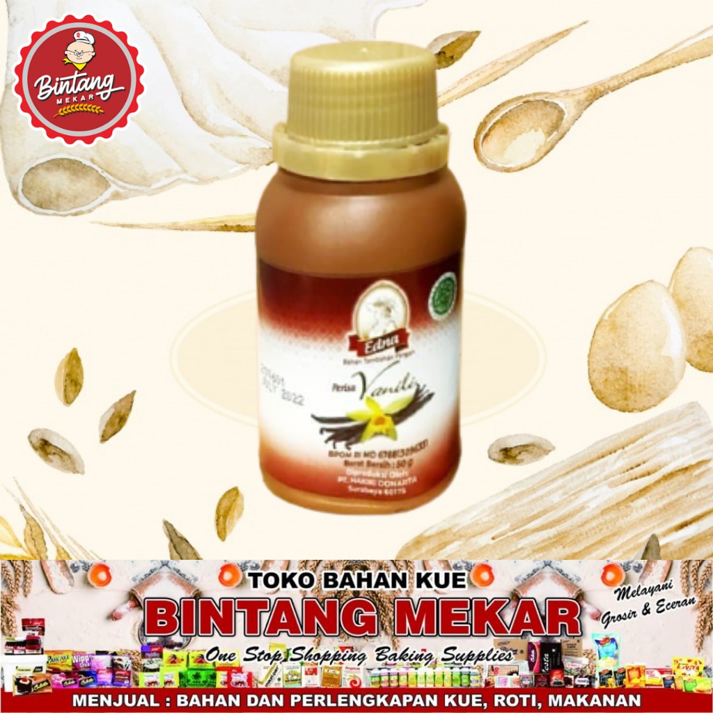 Edna Vanilli Powder menghadirkan aroma vanilla yang kuat serta menghilangkan bau amis dari telur dan tepung.
