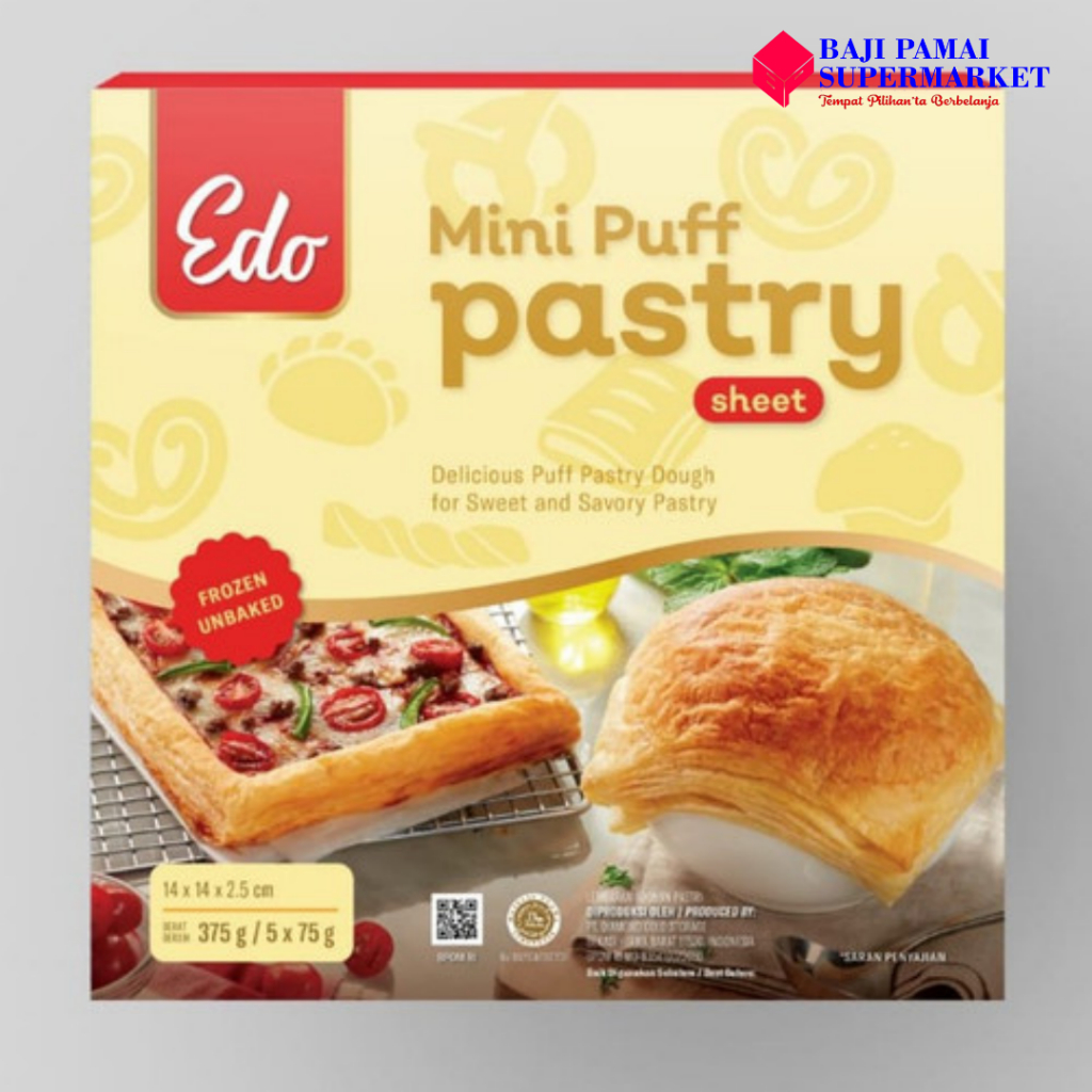 Edo Mini Puff Pastry Sheet merupakan adonan beku Puff Pastry yang siap pakai, tidak menggunakan pengawet, praktis, dan halal.