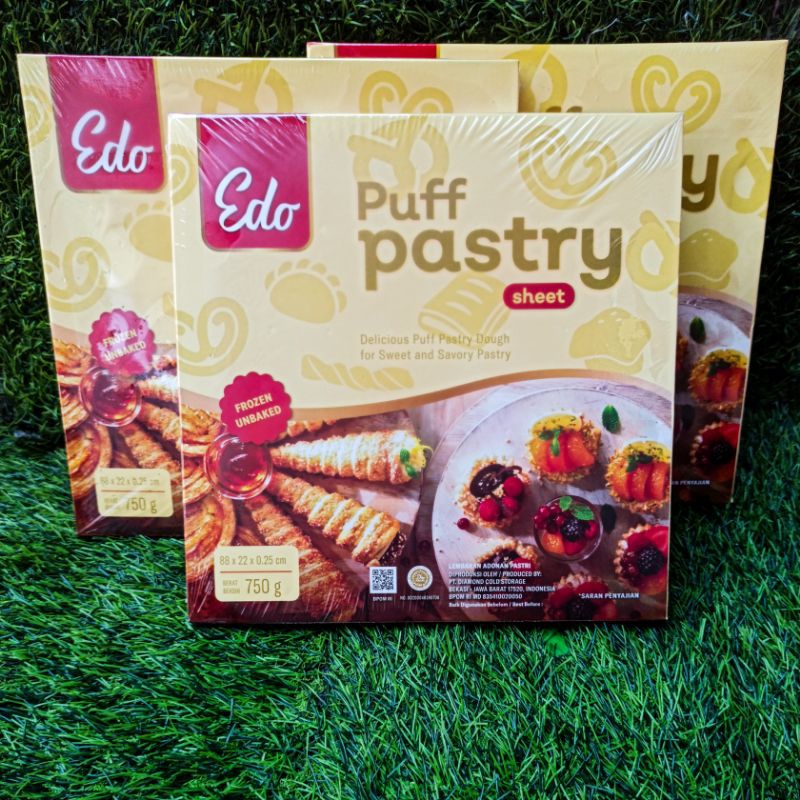 Edo Puff Pastry adalah adonan puff pastry siap olah yang berbahan dasar tepung terigu, air dan margarin. Cocok untuk membuat pastry yang renyah dan praktis di rumah. Edo Puff Pastry terbuat dari bahan-bahan yang mengandung karbohidrat,