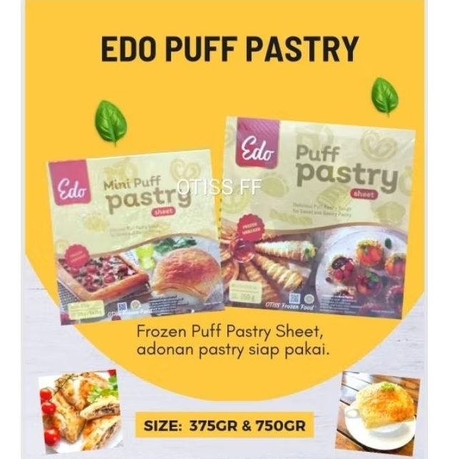Edo Puff Pastry, tersedia ukuran 375 gram dan 750 gram.