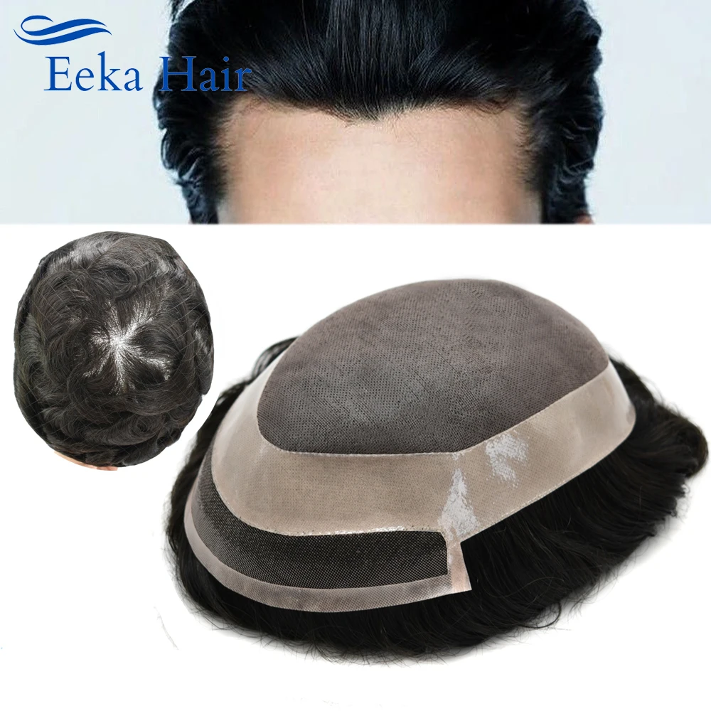 Eeka волосы прочные тонкие моно мужские парики сварные моно натуральные волосы отбеленные узлы прозрачные кружевные оборки парики (рассвет