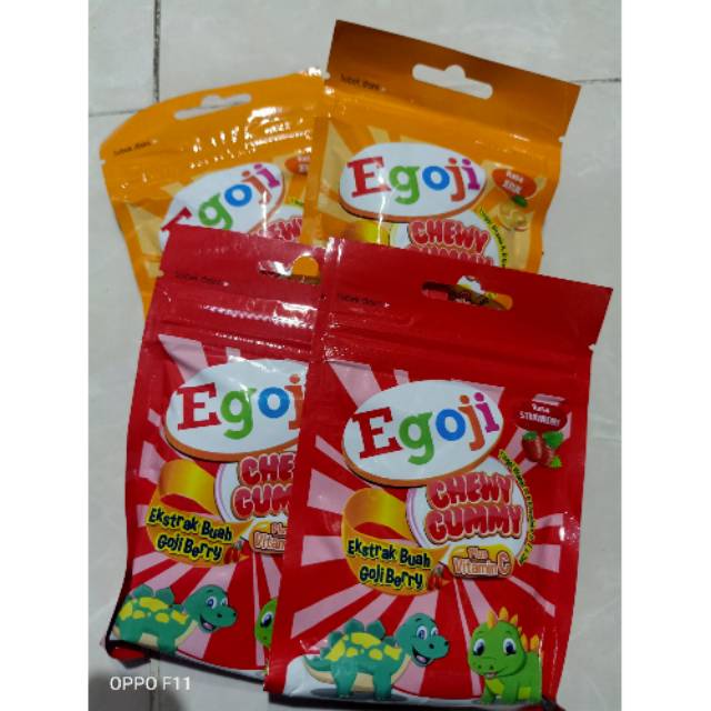 Egoji gummy permen multivitamin jeli yang mengandung ektrak buah goji berry, vitamin c yang baik untuk daya tahan tubuh dan juga tinggi vitamin A, B komplek, D, E Dan Zink