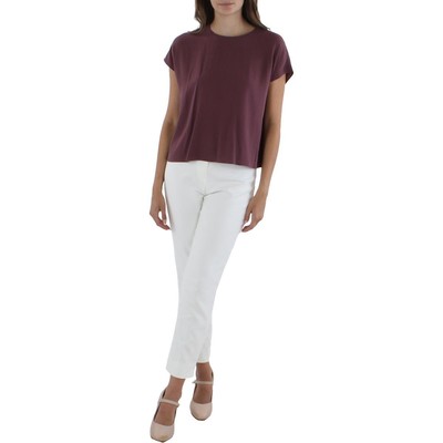 Eileen Fisher Женская Фиолетовая Шелковая Рубашка с Круглым Вырезом Туника Топ Блузка BHFO 7808, Fig