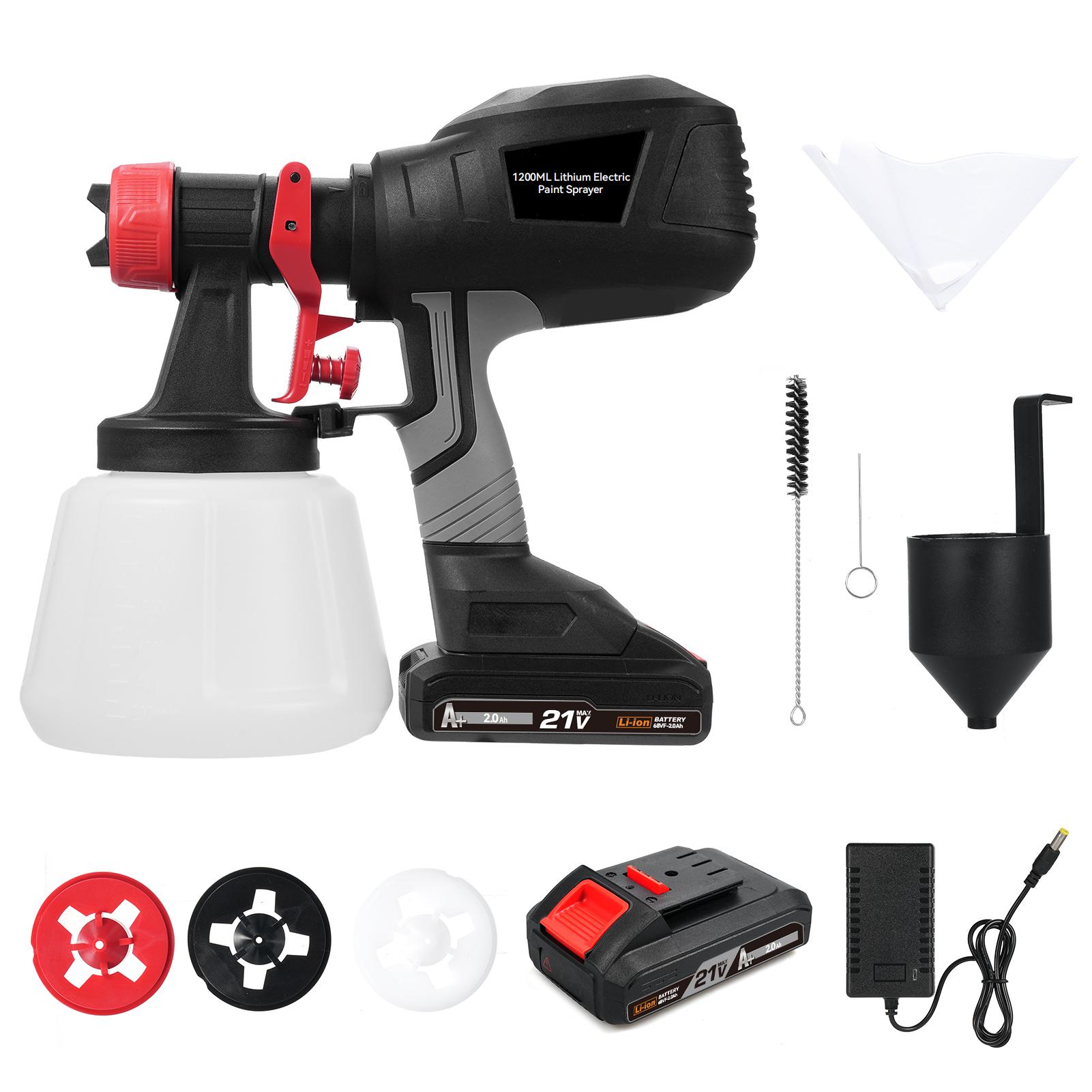 Электрический краскораспылитель с 2 аккумуляторами 21 В 2,0 Ач, краскопульт с 4 насадками и 3 распылителями US Plug чёрный