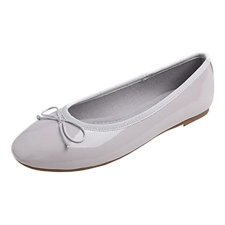 Feversole Women s Macaroon Colorful Memory Foam Cushion Insock Patent Ballet Flat Light Grey 9 M US