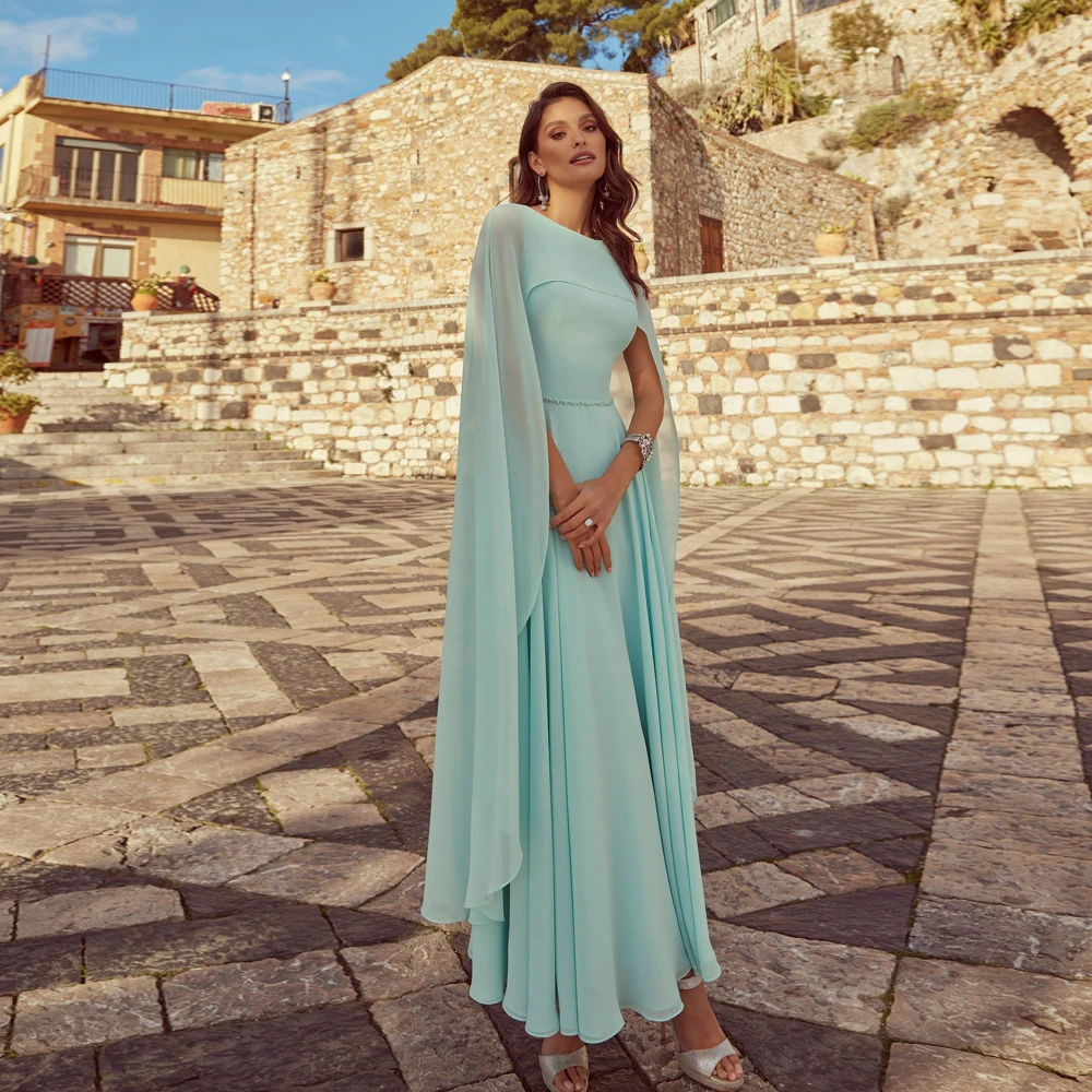 Elegant Chiffon Mother of the Bride Dresses O Neck Long Sleeves Wedding Party Gowns Beadings Ankle-Length A-Line فستان سهرة
