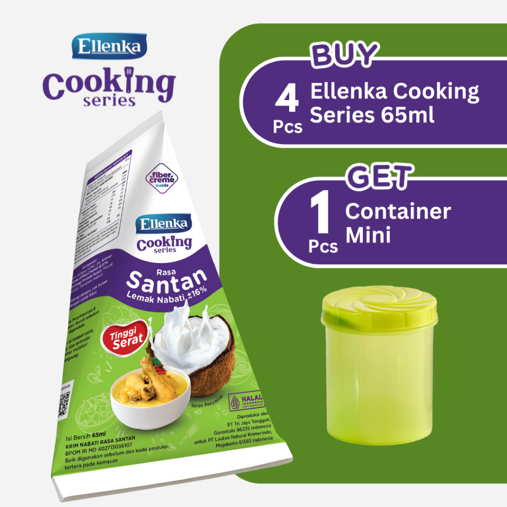 Ellenka Cooking Series Santan cair kemasan 65 ml yang terbuat dari santan kelapa dan FiberCreme yang praktis tinggal kocok, tuang, aduk yang rendah kolesterol.
