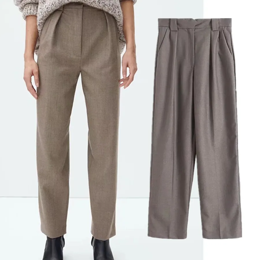 Elmsk простые однотонные Свободные плиссированные прямые брюки для женщин 2022английский стиль офисные женские модные костюмы брюки повседневные брюки для женщин