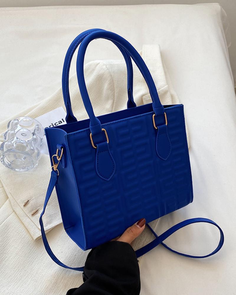 Embossed Crossbody Bag With Handle, Blue