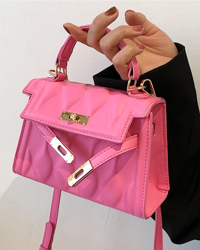 Embossed Flap Shoulder Bag With Handle, Pink