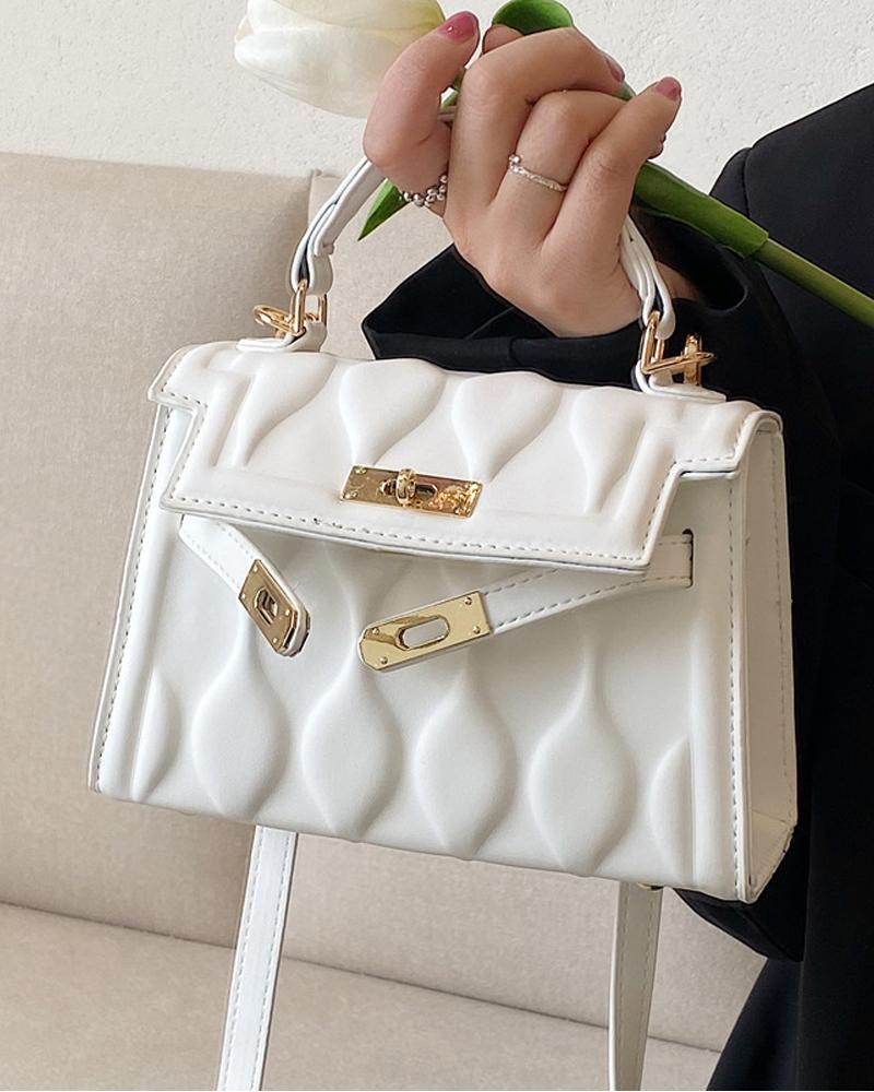Embossed Flap Shoulder Bag With Handle, White