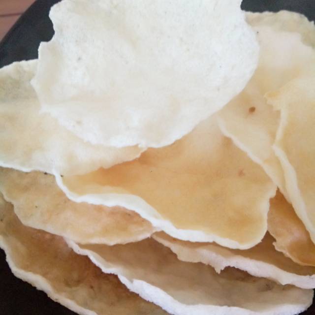 Bentuknya ada yg tidak utuh karena pembuatannya sangat tradisional jd tidak dipotong melainkan digeprek dg alat yg msh tradisional satu persatu seperti pembuatan emping melinjo tapi ini sangat tipis.