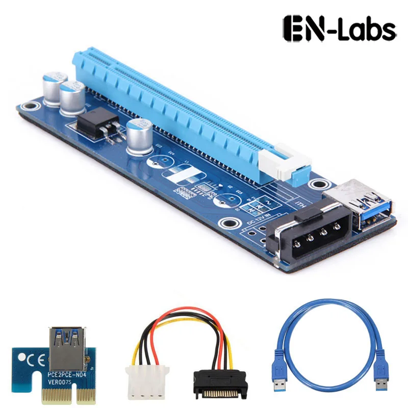 En-Labs PCIe 1x to 16x PCI Express Extender Rise Card,USB 3.0 PCI-e Extension Adapter w/ SATA to Molex Cable for Mining Machine